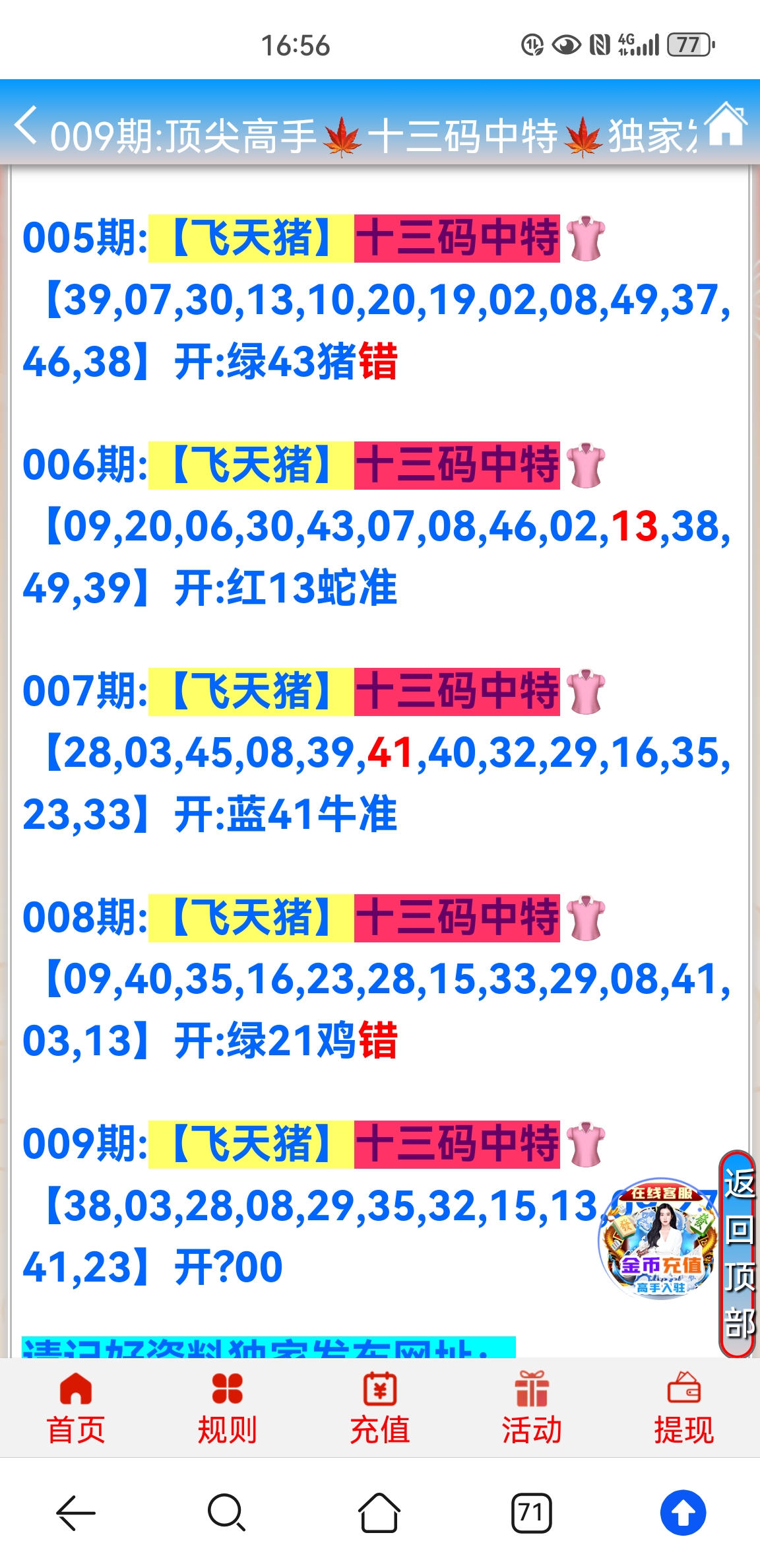 | 004期:九肖【狗猪鸡蛇虎羊马龙猴】开:鸡45准 | |||